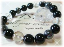 (パワーストーン ブレスレット/オニキス10mm玉・ヘマタイト10mm玉・水晶10mm玉)男性用19cm 女性用17cm (画像のブレスは19cmのものです)