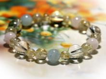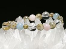 (パワーストーンブレスレット/金針ルチルクォーツ6・8mm・水晶10mm・モルガナイト8mm・アクアマリン8mm)