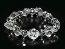 このブレスは本水晶を身につけたいけど、普通の丸いストーンでは物足りないという方にオススメの薔薇型の本水晶を使ったブレス。