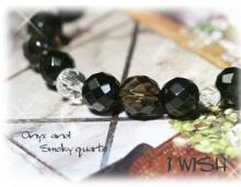 強い厄よけ効果を持つオニキスとスモーキークォーツ、水晶の組み合わせのブレス