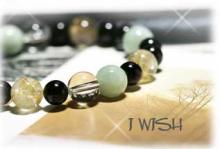 人生の成功と繁栄をもたらす翡翠、希望の光をもたらし、暗闇に打ち勝つ力を授け、プラスのものを引き寄せると言われるトルマリン、目標達成の力を与え、強力な守護、チャンスを呼び寄せる金針ルチルクォーツとで組んでいます。