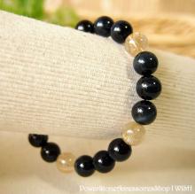 持ち主に鋭い観察力と直観力を与え成功へと導くブルータイガーアイと商売繁盛&強力な金運のパワーを持つといわれる金針ルチルクォーツの10mm玉で構成したブレス。