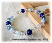 ブルー系のブレスをご希望ということと、お嬢様の願いに合っているお石がラピスラズリでしたので、このラピスラズリを4点においてデザインしております。