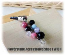 黒がお好きということと、冷えた関係を再び温める、離れた相手との距離を縮めるという復縁に適したパワーを持つことから、オブシディアンを3玉使い黒ベースのスマホピアスに仕上がるようにデザインしましたが、他にも多数のお石が入っておりますので、黒が多めですが、少々カラフルな仕上がりになっております。