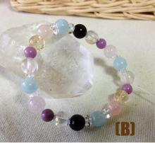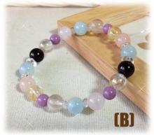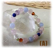 透明度が高い方のピンクの石がマダガスカル産ローズクォーツになります。ブレスの中には2玉お入れしており、それ以外のピンクのお石はモルガナイトになります。