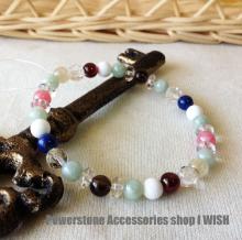 健康運のお石としてご縁のあった翡翠をベースに使っておりますが、そのほかにもお入れしたいお石が複数ありましたので、翡翠ベースではありますが、他のお石も多数入ったブレスに仕上がっております。