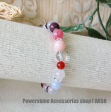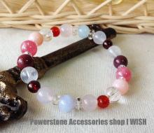 カーネリアン・ガーネット・ピンクオパール・インカローズ・モッカイト・ピンクカルセドニー・ブルーレースアゲート・アクアマリン・ムーンクォーツ・水晶で構成しております。