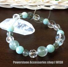 (アマゾナイト(モザンピーク産)8mm玉・ガーデンクォーツ10mm玉・グリーンルチルクォーツ6.5mm玉・カット水晶8mm玉)