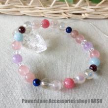 もっとピンクに統一したいようであればデザイン変更時にご指定の石をブレスから抜きピンクに近いイメージにしますが、現在のままでも色のバラつきが気にならない場合は石の種類が多い分、石の組み合わせが多数できますので複数の相乗効果もできますので幅広いサポートができ、パワーとしてはとても良いと思います。