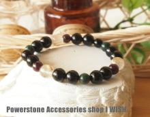 (パワーストーン ブレスレット/トルマリン10mm玉・ガーネット8mm玉・ブラッドストーン8mm玉・ルチルクォーツ10mm玉)
