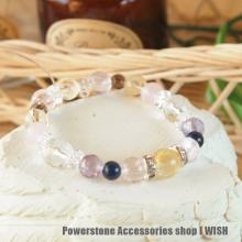 (パワーストーン ブレスレット/ルチルクォーツ10mm玉・マダガスカル産ローズクォーツ8mm玉・ラピスラズリ6mm玉・カットアメジスト8mm玉・カット水晶10mm玉・ローズクォーツ8mm玉・シトリン8mm玉・スモーキークォーツ6mm玉・カットそろばん)