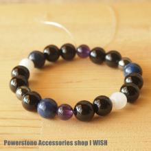 (パワーストーン ブレスレット/トルマリン10mm玉・アメジスト8mm玉・ヘマタイト8mm玉・ラピスラズリ10mm玉・ムーンストーン8mm玉)手首実寸16cm