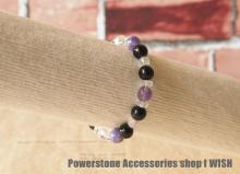 メールでもお伝えしましたが、本当はピンク系のお石も少し使って可愛い雰囲気に仕上げたいと思っていたのですが、パープルと黒で統一した方がデザインやパワーの方向性が合いますし、何より、ピンクのお石を入れるスペースがあれば、強力な遮断のパワーを持つお石を入れたいと言う気持ちからこのようなブレスレットが出来あがりました。