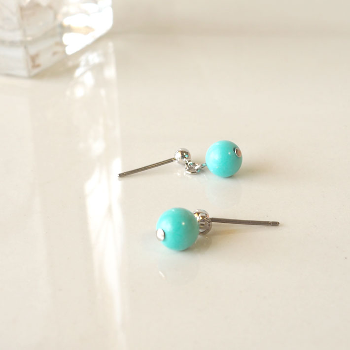 | 素材: パワーストーン 天然石 など | ・マグネサイトターコイズ6mm玉 ・ピアス金具素材 ストレートタイプ:チタン(先端部分の玉は真鍮) U字フックタイプ:チタン |