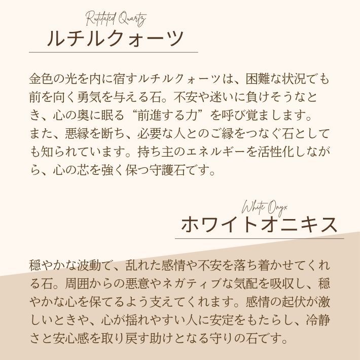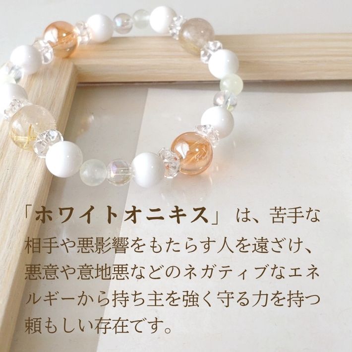 | サポート | ◆ホワイトオニキス◆ 心に希望の光を灯し、明るく前向きな気持ちへ導いてくれる石。 |