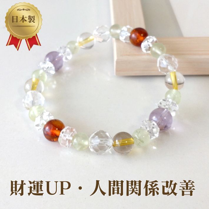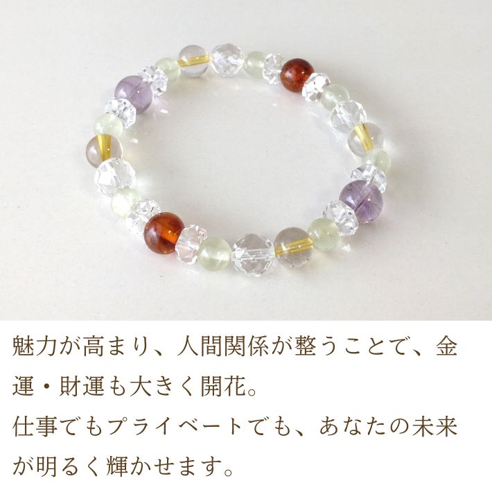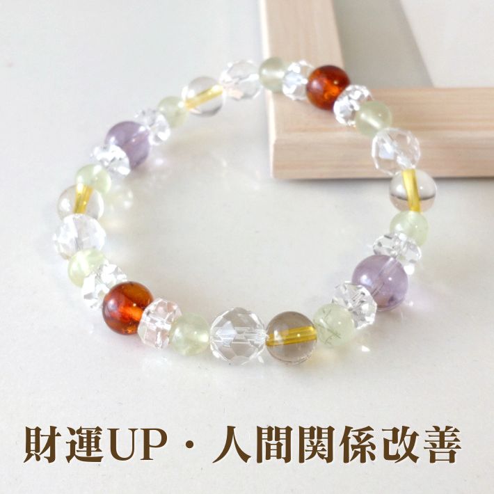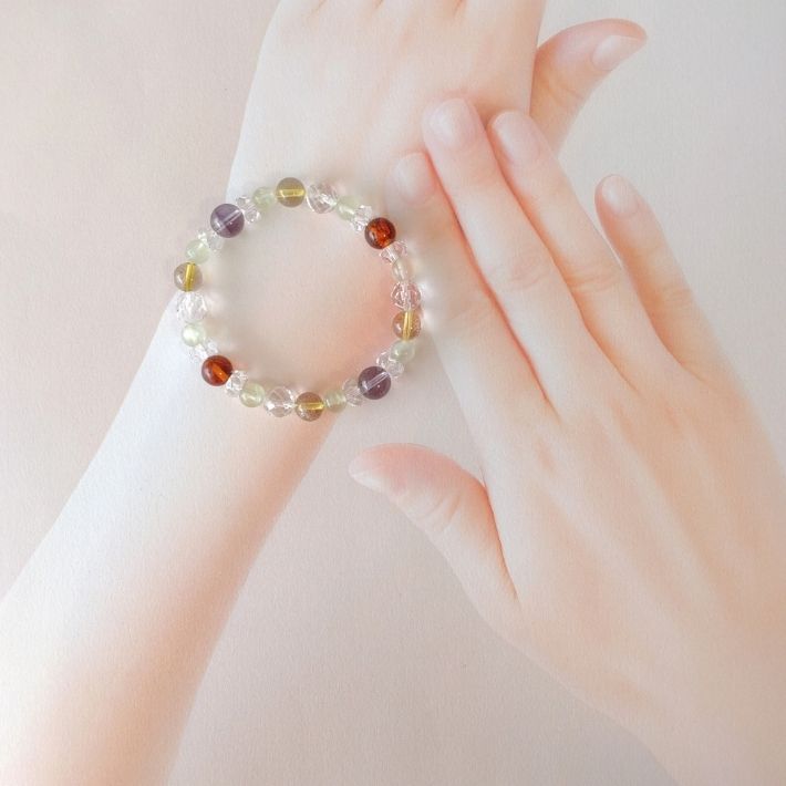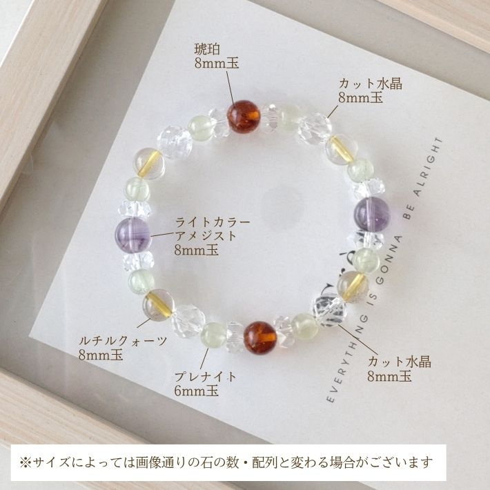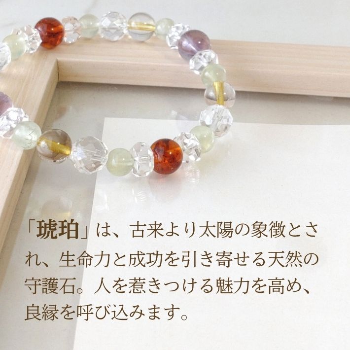 ( パワーストーン ブレスレット 天然石 / 琥珀 8mm玉 ・ ライトカラー アメジスト 8mm玉 ・ ルチルクォーツ 8mm玉 ・ プレナイト 6mm玉 ・ カット 水晶 8mm玉 ・ カットそろばん)