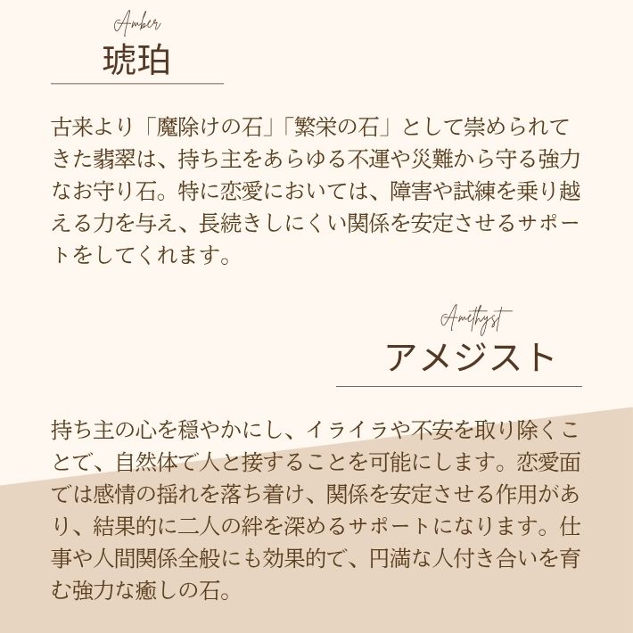 | コメント | I WISHのブレスレットは既製品ではございません。ご注文をいただいてからご注文者様のために心をこめて丁寧にお仕立てをしております。 |