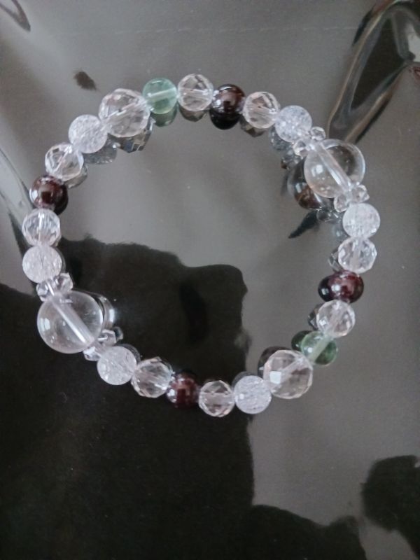 (パワーストーン ブレスレット/ガーネット6mm玉・カット水晶6&8mm玉・爆裂水晶6mm玉・水晶10mm玉・カットそろばん)