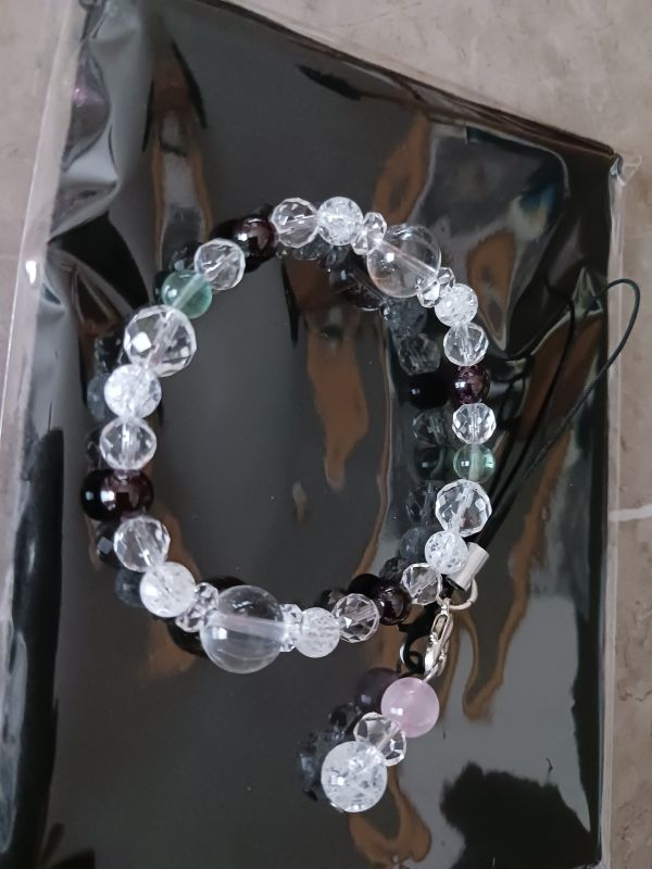 また、おまけのストラップもお好きなピンクのストーンで気に入っていただけたとのこと、嬉しい限りです。
