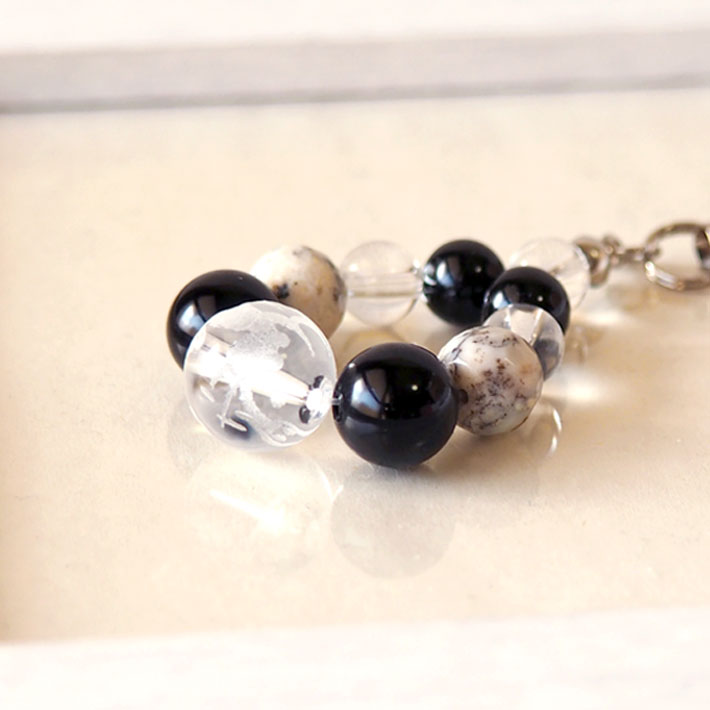 モリオン・オパール・水晶の青龍刻印パワーストーンストラップ 強力な厄除けと幸運 /メンズ・レディース [2120161014]