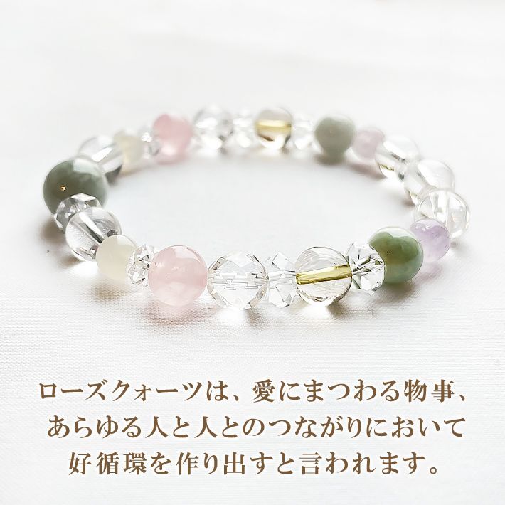 【鑑定ブレス】 翡翠・ローズクォーツのブレスレット 愛・幸運・金運・厄除け・感謝 [1020160417]