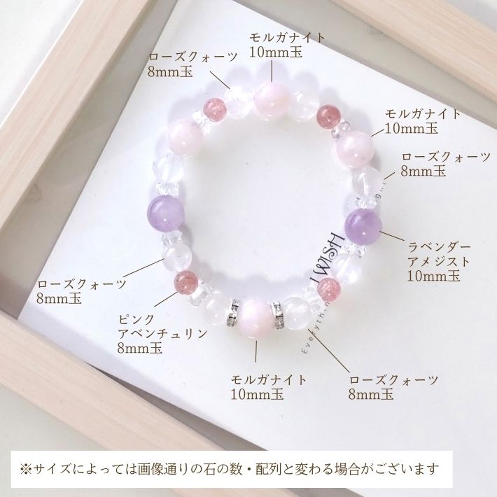 ( パワーストーン ブレスレット 天然石 /モルガナイト 10mm玉 ・ ローズクォーツ 8mm玉 ・ピンク アベンチュリン 6mm玉 ・ ラベンダー アメジスト 10mm玉 ・ カットそろばん )