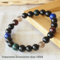 (パワーストーン(天然石) ブレスレット/トルマリン8mm玉・ラピスラズリ8mm玉・オニキス8mm玉・ブラッドストーン8mm玉・スモーキークォーツ8mm玉・ガーネット8mm玉)