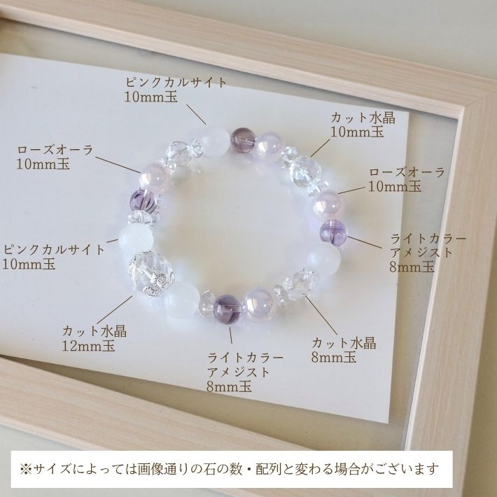 ( パワーストーン ブレスレット 天然石 / ライトカラー アメジスト 8mm玉 ・ ローズオーラ 10mm玉 ・ ピンクカルサイト 10mm玉 ・ カット水晶 8mm & 10mm & 12mm玉 ・ 菊座 )