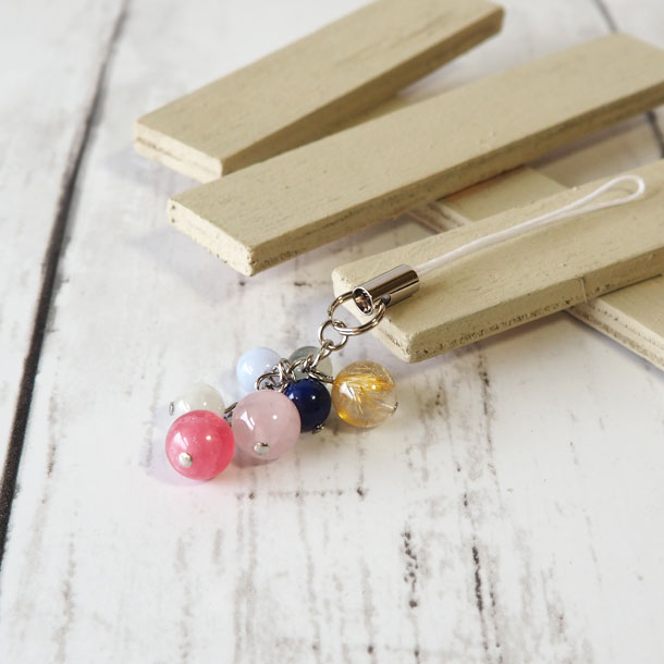 (パワーストーン ストラップ (天然石)/インカローズ8mm玉・ローズクォーツ8mm玉・ルチルクォーツ8mm玉・翡翠6mm玉・ラピスラズリ6mm玉・ブルーレースアゲート6mm玉・プレナイト6mm玉)