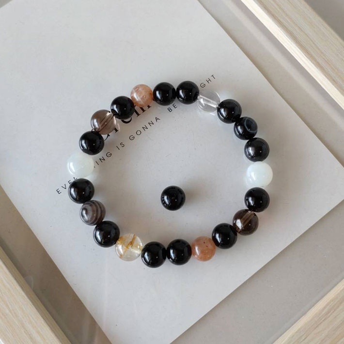 交換が必要なストーンはありませんでした。サイズ調整のため、ブレスレットに複数使用されているオニキスを1玉抜いて調整いたしました。