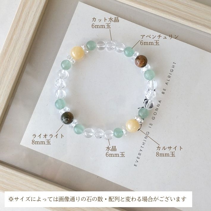 ( パワーストーン ブレスレット 天然石 / ライオライト 8mm玉 ・カルサイト 8mm玉 ・ アベンチュリン 6mm玉 ・ 水晶 6mm玉 ・ カット 水晶 6mm玉 ・ カットそろばん )
