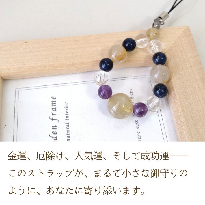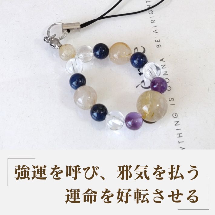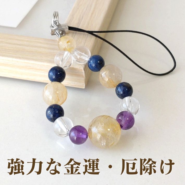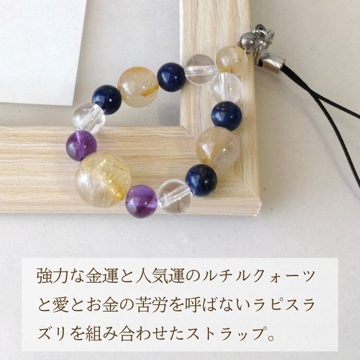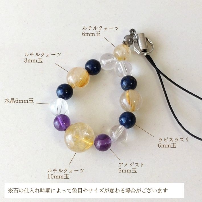 ( パワーストーン ストラップ 天然石 / ルチルクォーツ 10mm & 8mm & 6mm玉 ・ ラピスラズリ 6mm玉 ・ アメジスト 6mm玉 ・ 水晶 6mm玉 )