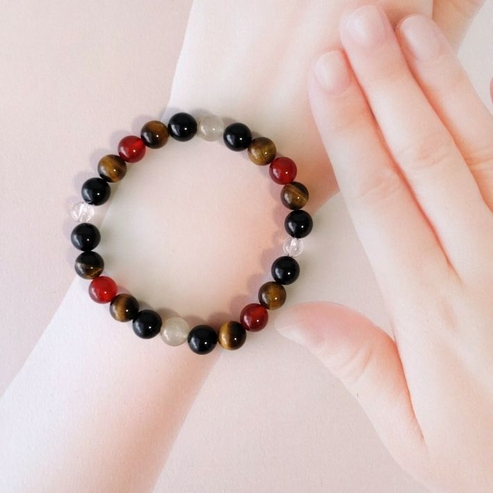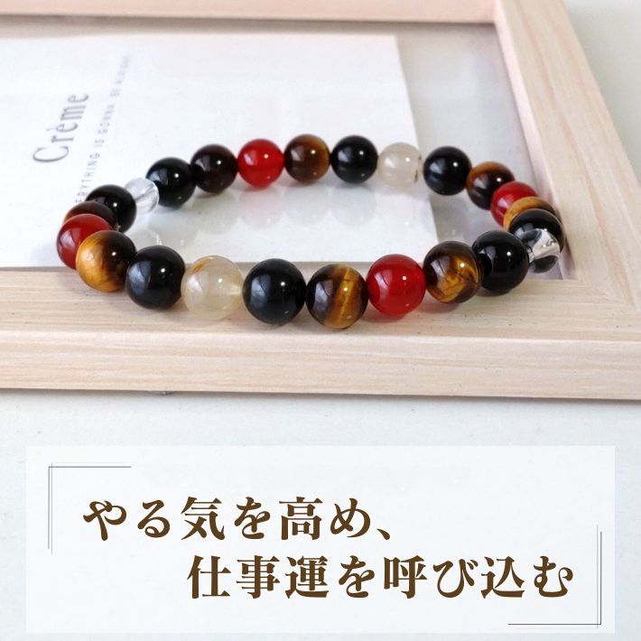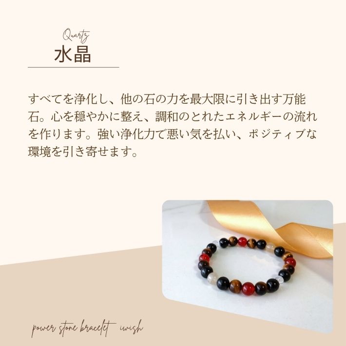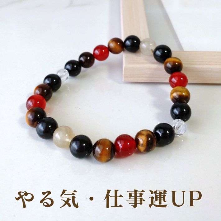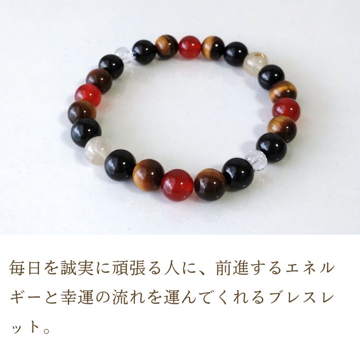 ( パワーストーン ブレスレット 天然石 / トルマリン8mm玉・タイガーアイ8mm玉・ルチル クォーツ8mm玉・カーネリアン8mm玉・水晶6mm玉 )