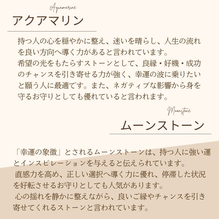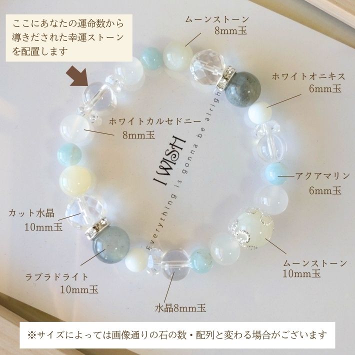 パワーストーン ブレスレット 天然石(ムーンストーン10mm玉・ホワイトカルセドニー8mm玉・アクアマリン6mm玉・水晶8mm玉・ホワイトオニキス6mm玉・ラブラドライト10mm玉・カット水晶10mm玉・ムーンストーン8mm玉・カットそろばん・菊座・ロンデル) Q. 運命数はどのようにしてわかりますか? A. 商品ページに計算方法を表示しておりますのでご自身で計算下さい。 Q. 浄化はされていますか?