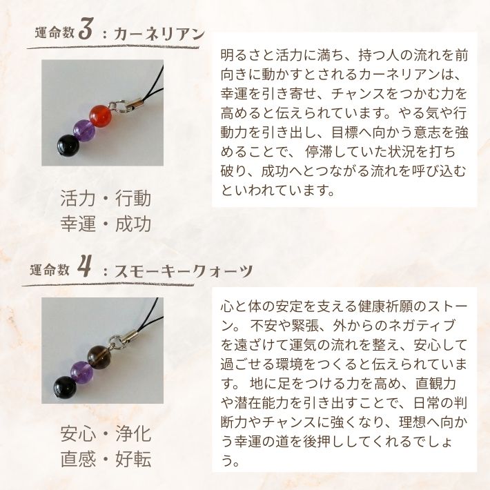 - 運命数3:カーネリアン(明るさと活力・チャンス)