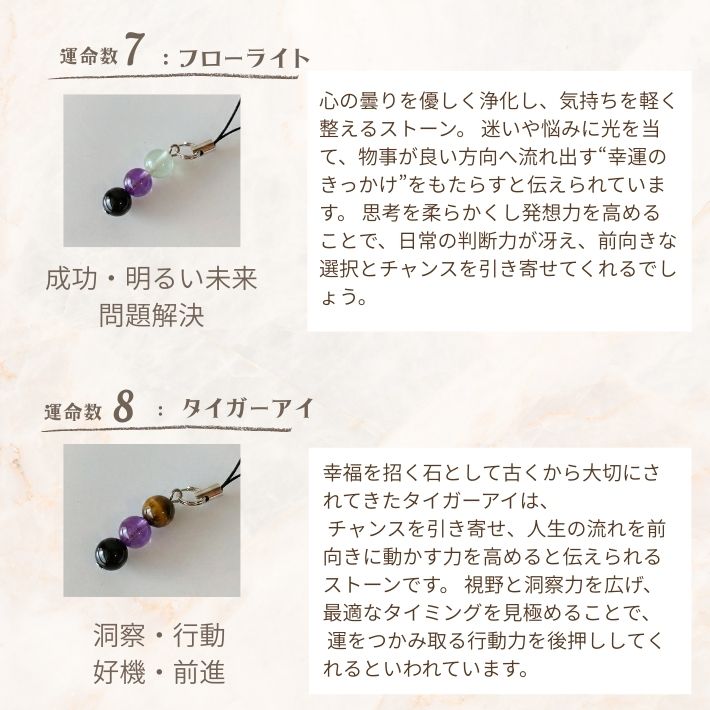 - 運命数7:フローライト(心の浄化・幸運のきっかけ)
