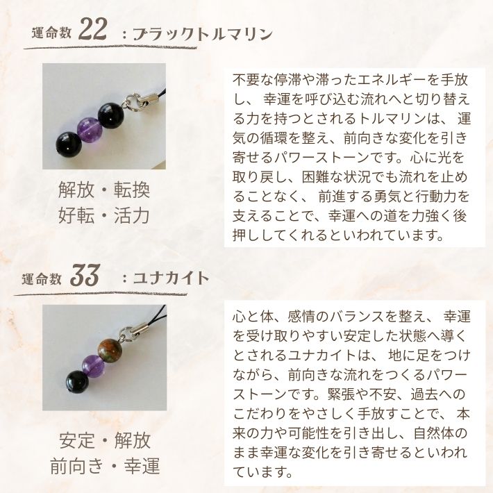 - 運命数22:ブラックトルマリン(停滞の打破・幸運の循環)