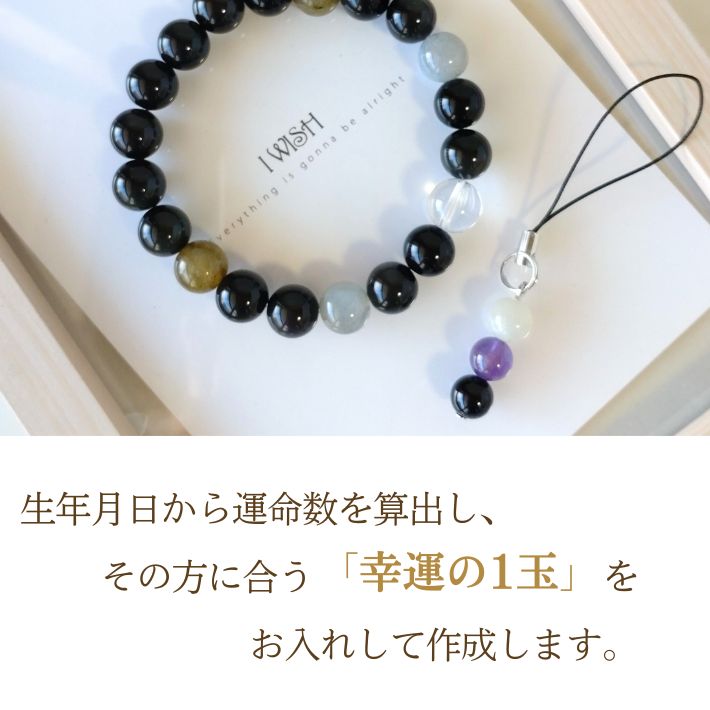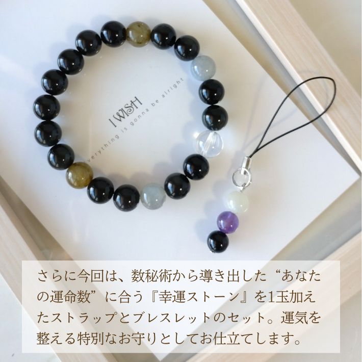 2026年の運勢を整え、幸運を引き寄せることを目的とした、生年月日から導き出す「運命数」の1玉を添えたオーダーメイド鑑定ブレスレット&ストラップのセットです。