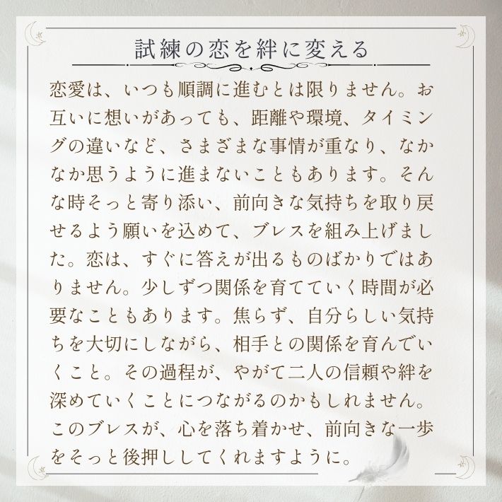 「どんな壁も、二人で乗り越える力に変えて。深い愛と絆を育む守護ブレス。」