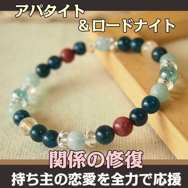 パワーストーン・ブレスレット アパタイトとアクアオーラのパワーストーン・ブレスレット・ロードナイト入り 持ち主の恋愛を全力で応援&関係の修復&仲直り/レディース [746bb1fkeaj]