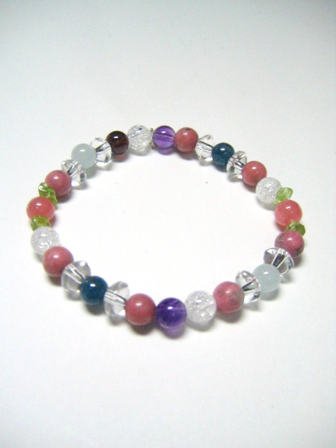 (インカローズ・ロードナイト・アメジスト・アクアマリン・アパタイト・爆裂水晶・水晶・ペリドット・ガーネット)